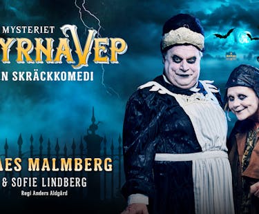 I höst förvandlas Kajskjul 8 till ett dimmigt, gotiskt slott där skratt möter skräck och inget är vad det verkar. Mysteriet Myrna Vep är en teaterföreställning laddad med klassisk skräckfilmsstämning, Hitchcock-vibbar, kameleontskådespeleri - och galet mycket humor. Två skådespelare - Claes Malmberg och Sofie Lindberg - gestaltar åtta roller i ett halsbrytande tempo med blixtsnabba kostymbyten, skruvade karaktärer och teatralisk precision. Från snobbiga lorder till levande mumier, mystiska främlingar och balsamerade prinsessor - allt medan musiken väver samman skräck och komik.